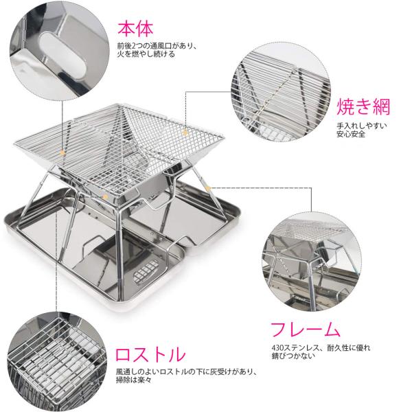 ファイアグリル 焚火台 バーベキューコンロ 国内仕上げ バリ取り研磨済 収納ケース 焼網も ステンレス製 2-4人用