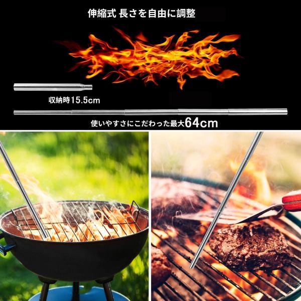 火吹き棒 伸縮式 火吹き ふいご 火起こし 焚き火 暖炉 炭 薪 バーベキュー BBQ キャンプ用 軽量 コンパクト 最長64cm 収納袋付き