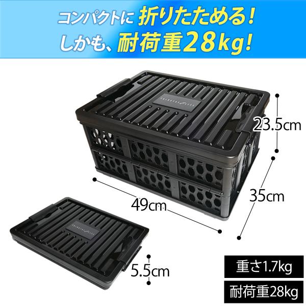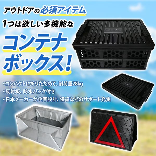 シアザライフ コンテナボックス トランクカーゴ カゴ 収納ボックス 折りたたみ 防水バッグ 反射板付 保冷 大容量28L 耐荷重28kg キャンプ アウトドア ブラック