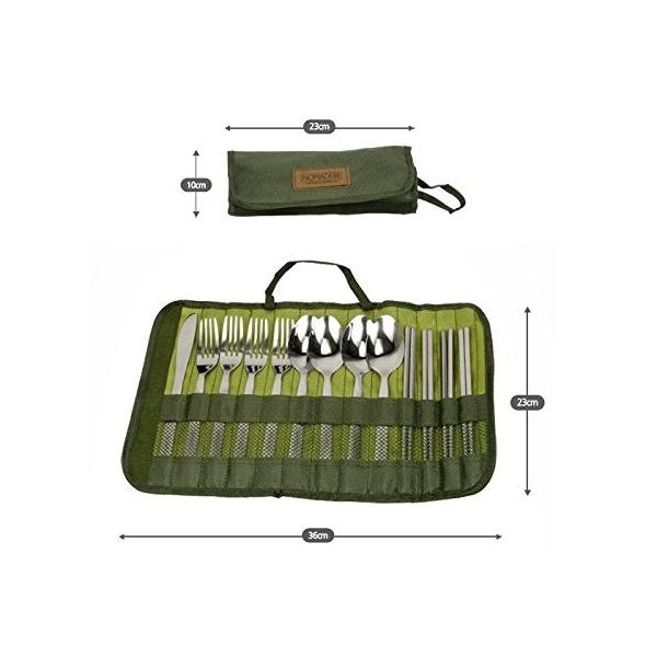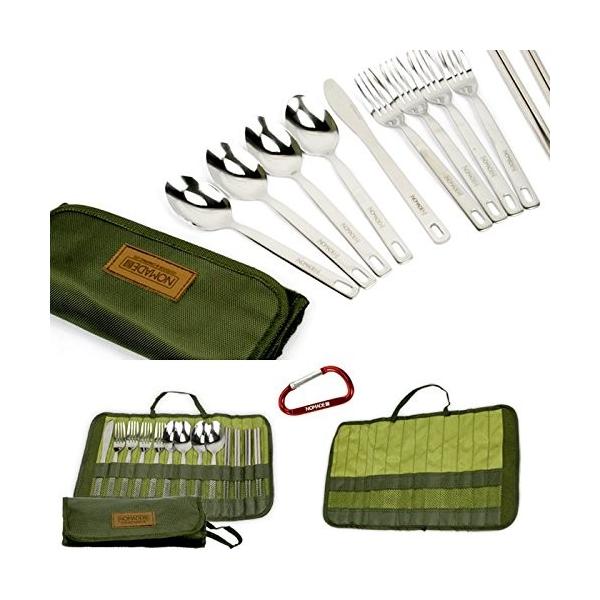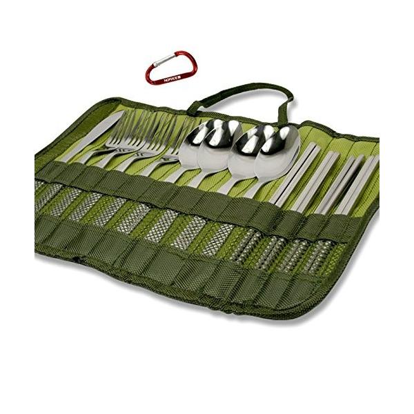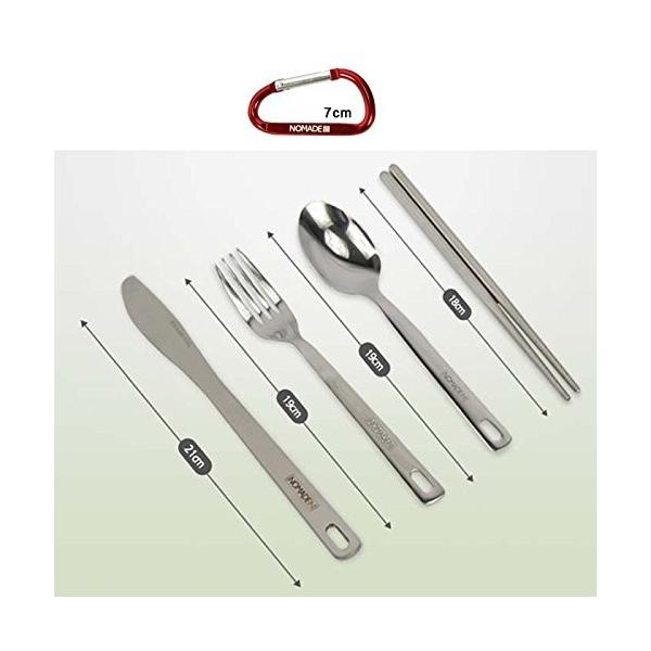 NOMADE アウトドア スプーン 箸 フォーク セット 4人用 コンパクト 収納 ナイフ 1個 カラビナ1個