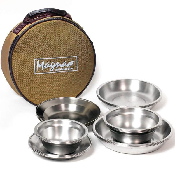 MAGNA(マグナ) ステンレス食器セット 天然木 まな板付き キャンプ バーベキュー アウトドア ファミリー