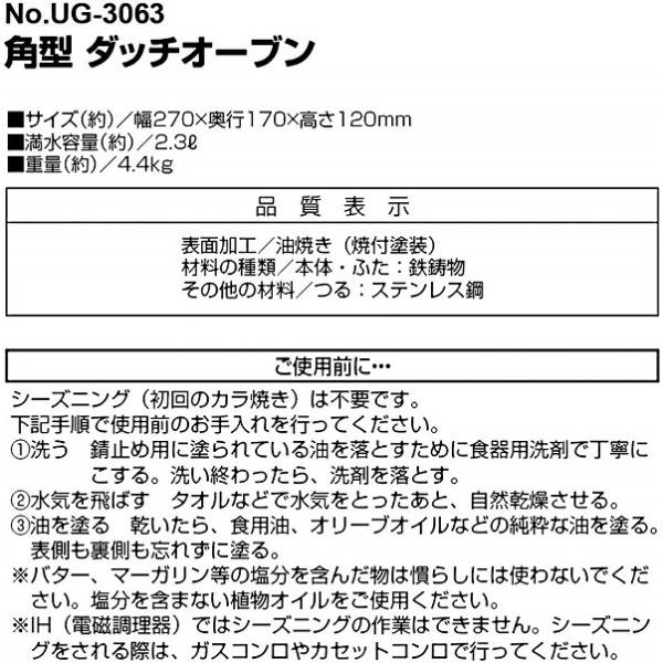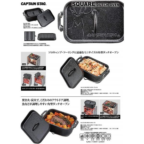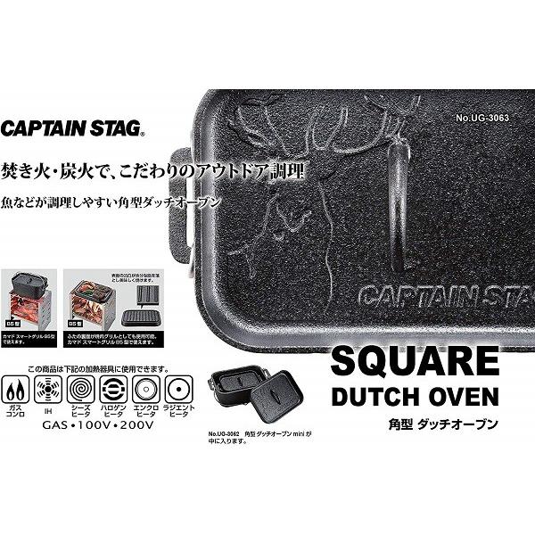 角型 ダッチオーブン CAPTAIN STAG キャプテンスタッグ 鍋 おしゃれ ソロキャンプ ツーリング ダッチ オーブン ミニサイズ 角形 ふた UG-3063