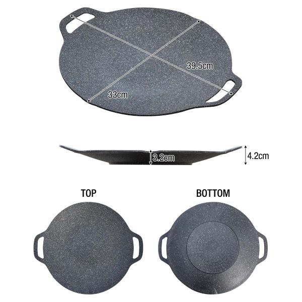ヤフー1位 ラウンドグリドルパン Mサイズ 丸型 33cm×39cm 直火 ガス IH対応 軽量アルミ合金 グリルパン グリルプレート FIELDOOR 送料無料