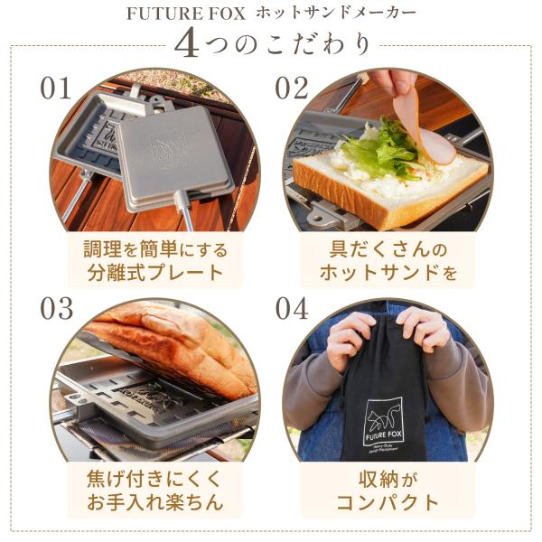 ホットサンドメーカー 直火 分離式 コンパクト収納 焦げ付きにくい 深さ3cm キャンプ FUTUREFOX
