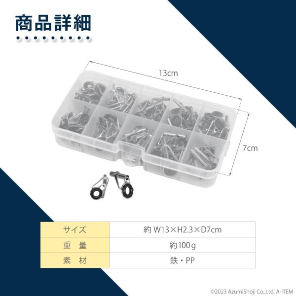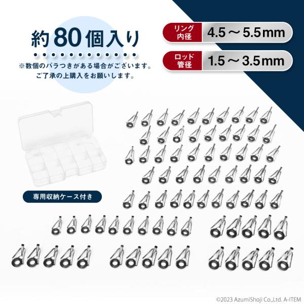 A-ITEM トップガイド修理キット 80個セット トップガイド ロッドガイド 1.5mm〜3.5mm 10サイズ 釣り竿 穂先 釣り竿ガイド 先端 交換 修理キット エーアイテム