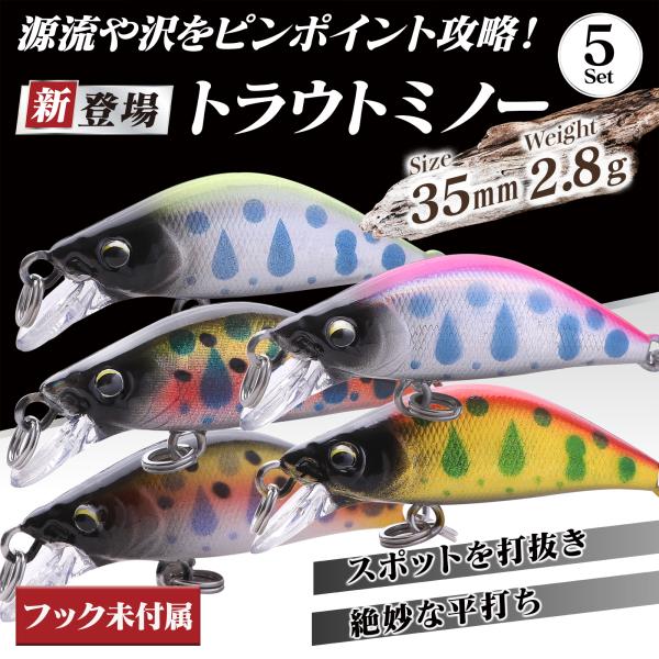 渓流ミノー トラウトルアー 5 セット 35mm 2.8g 35s トラウトミノー シンキングエリアトラウト 渓流ルアー CONTYU