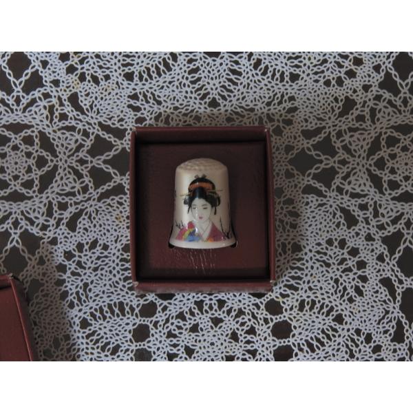 美人画絵 指貫 折り鶴 (thimble w/ Geisha Girl and Origami crane )