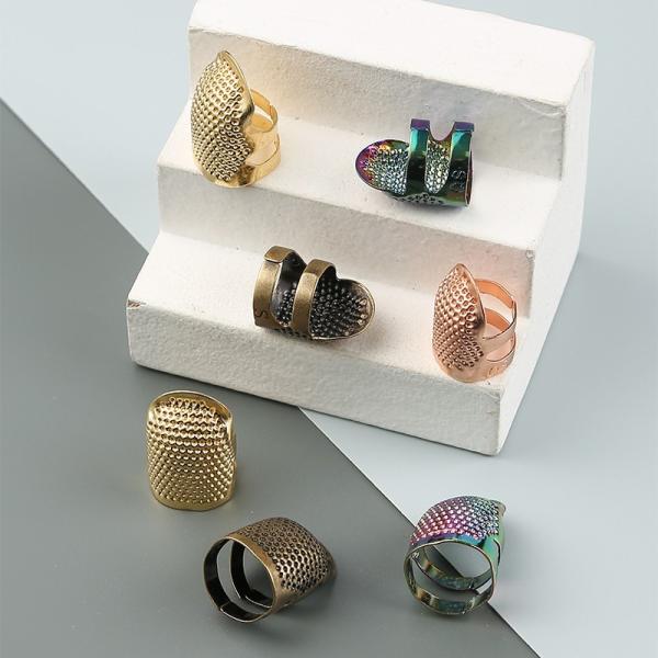 指ぬき 4個セット 指貫 ゆびぬき 指サック 指カバー 編物道具 手芸用品 金属製 ハンドメイド アンティーク風 かわいい おしゃれ