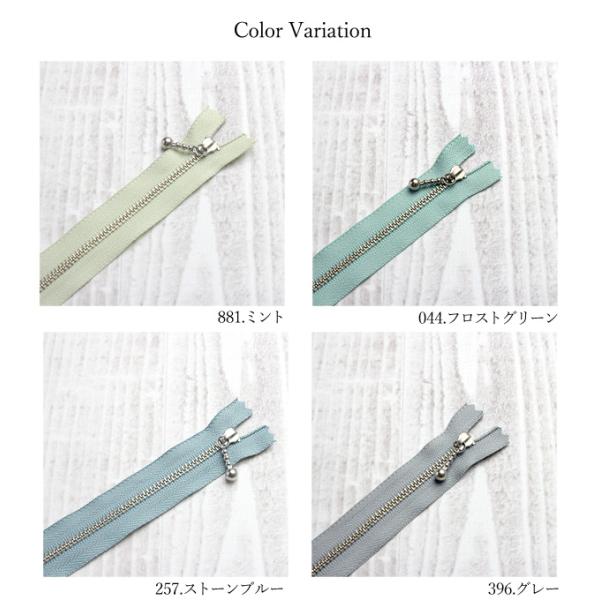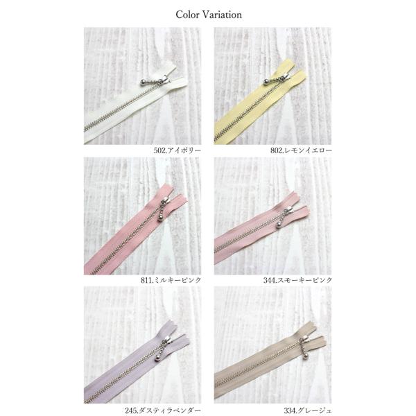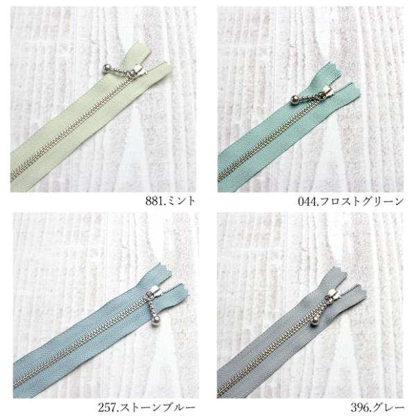ファスナー 20cm YKK 玉付き シルバー 銀色 くすみカラー ジッパー チャック ジップ ボールチェーン ポーチ ペンケース ハンドメイド 手芸