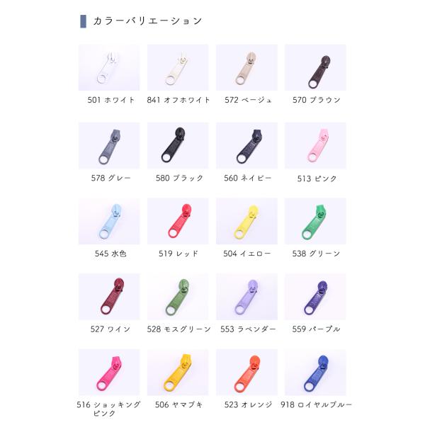 ◆3号いっぽんファスナースライダー10個セット(6070)【メール便30個まで】|ミシンおじさん いっぽんふぁすなー 一本ファスナー ファスナー カラフル いっぽん