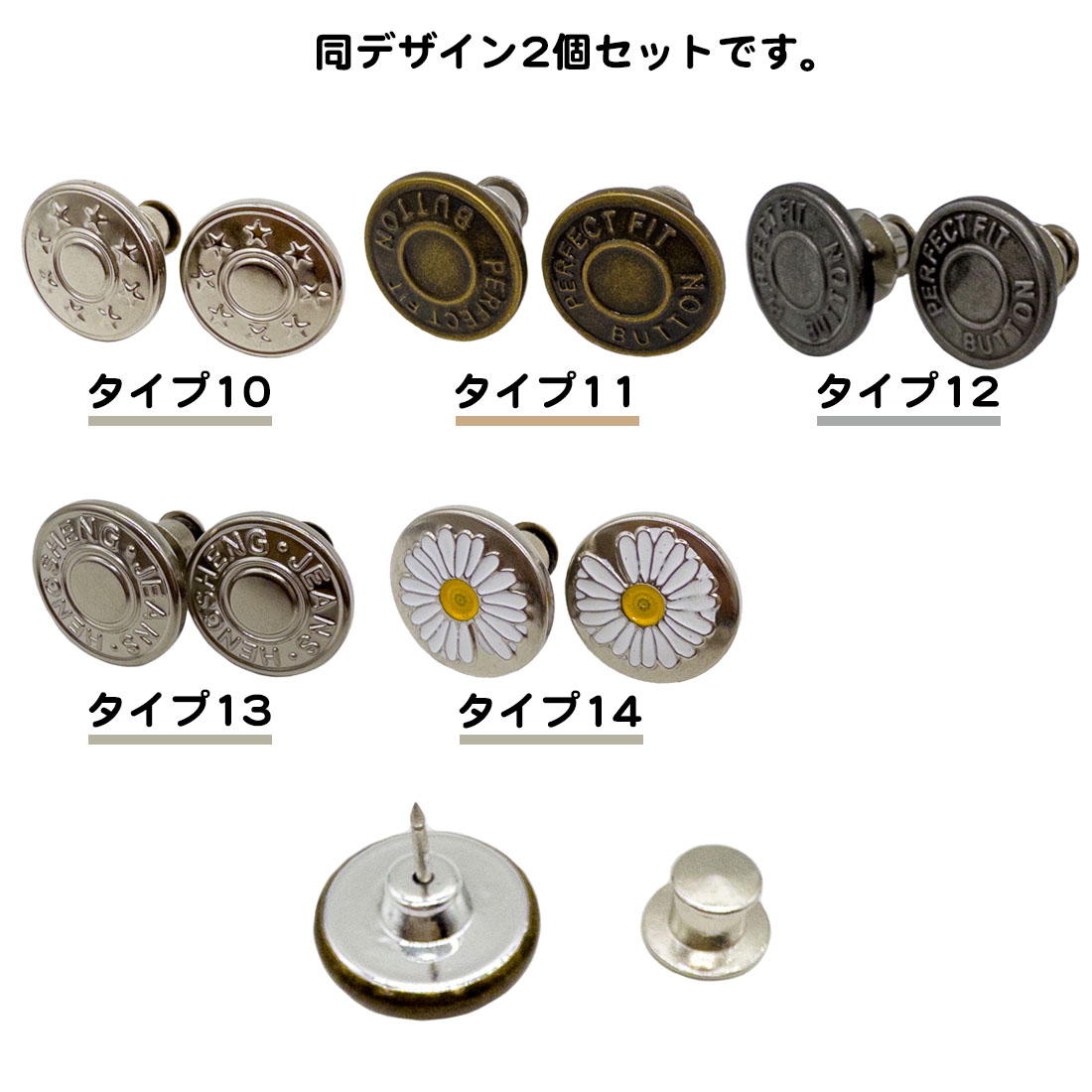 2個セット デニムボタン 金属製 17mm 付け替え 補修 修理 留め具付き 替えボタン デニム ボタン 調整 ピン タックボタン パンツ ズボン バッグ アンティーク