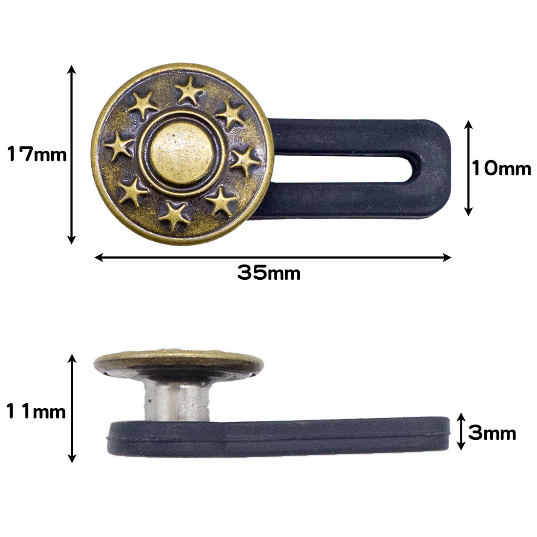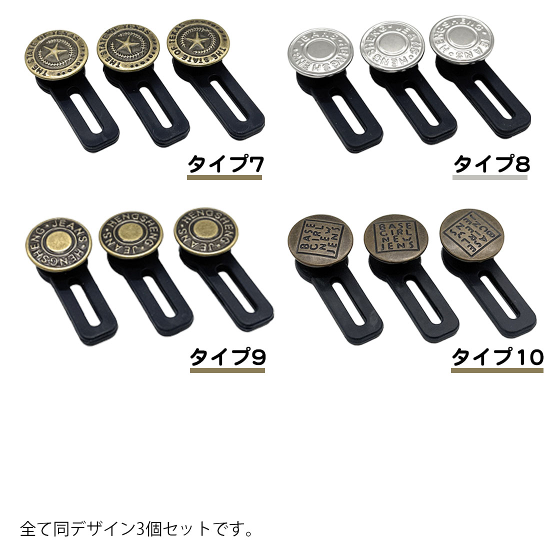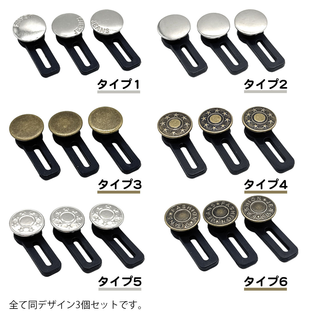 3個セット ズボン ウエスト調整ボタン ウエストアジャスター 延長 サイズ調整 拡大 お直し ジーンズ デニム パンツ 簡単 ワンタッチ ボタン つけるだけ DIY