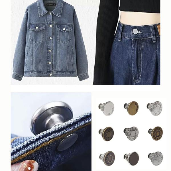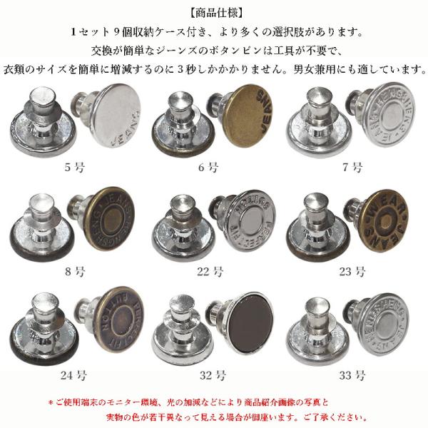 【9個セット】ジーンズにぴったりのボタンピン 取り外し可能 ジャンボタンピン縫いなし 調節可能な金属ボタン パンツウエスト増減可