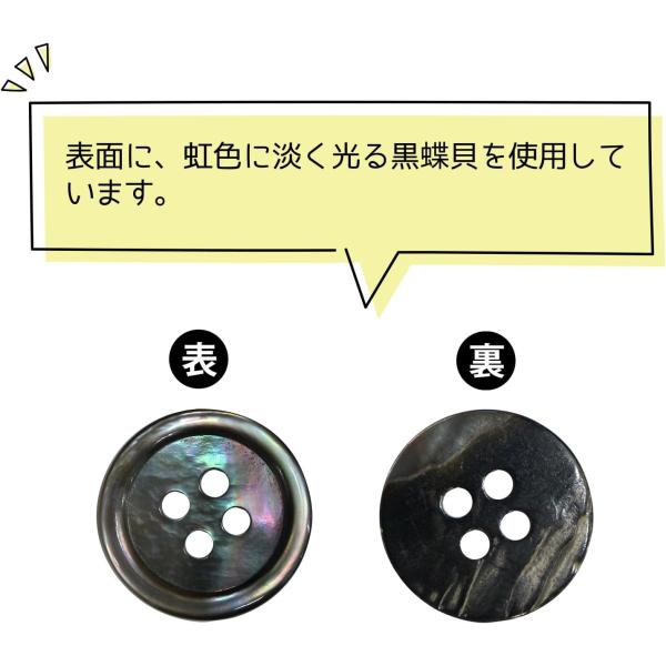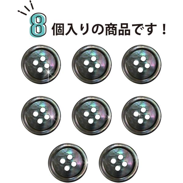 シェルボタン 貝ボタン 貝製 片面 黒蝶貝 シャツ ボタン 四つ穴ボタン 黒 ブラック 8個入り【15mm】 B-089