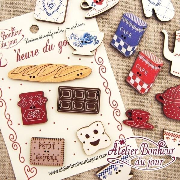 フランス製 木製ボタン 8つ穴 (食いしん坊なテディベア・アイボリー) アトリエ・ボヌール・ドゥ・ジュール