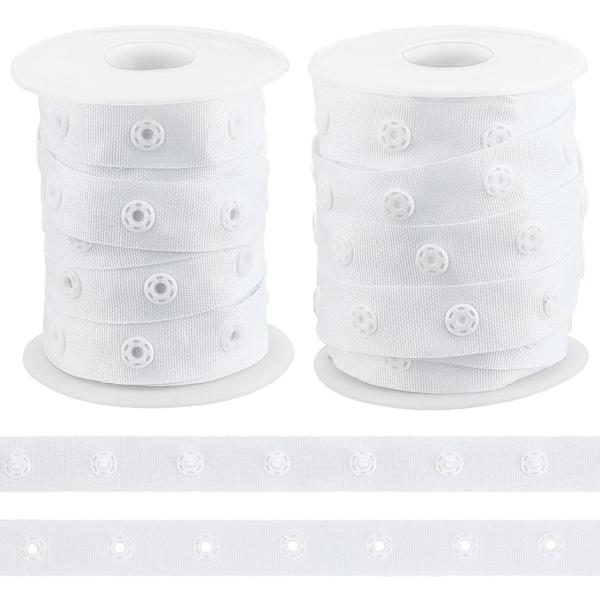 10ヤードセット スナップテープ 幅18mm ポリエステルスナップ プラスチックボタン ファスナー 縫製材料 ボタンが付( ホワイト)