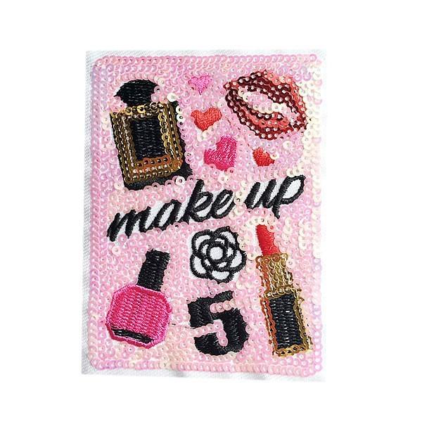 ワッペン スパンコール アイロン アップリケ おしゃれ コスメ キラキラ 縦10.4cm×横7.7cm メール便可 爆買