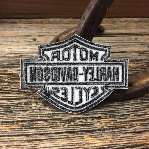 送料無料 ハーレー B&S ロゴ ミニ 刺繍 ワッペン ◆ パッチ Harley 光を反射 グレー/ブラック 小 CAWP37