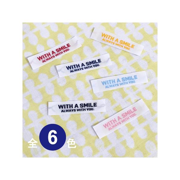 ハンドメイドに刺繍タグ5枚セット‐WITH A SMILE(白色×黒)