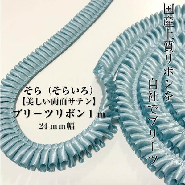ロゼット リボン そら プリーツ リボン 24mm幅 プリーツリボン 1m 国産両面サテンリボン ロゼット ロゼッタ 作りに最適 ヘアゴム カチューシャ など 手作り