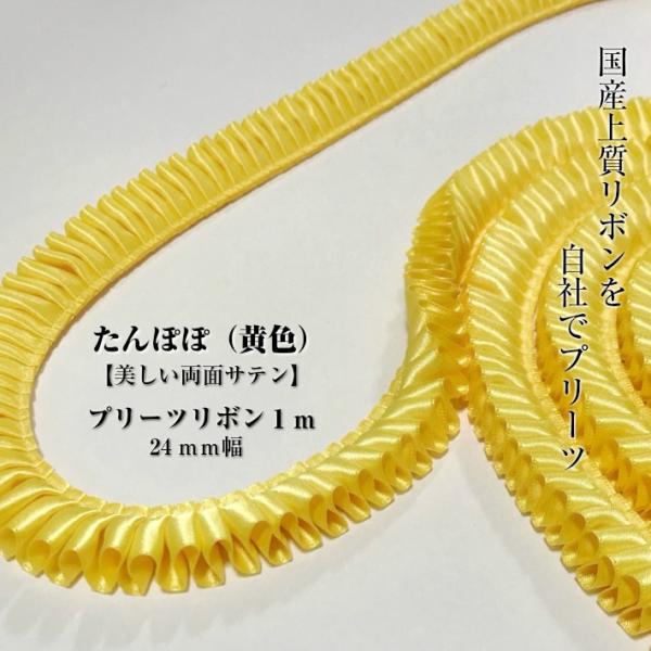ロゼット リボン たんぽぽ プリーツ リボン 24mm幅 プリーツリボン 1m 国産両面サテンリボン ロゼット ロゼッタ 作りに最適 ヘアゴム カチューシャ など 手