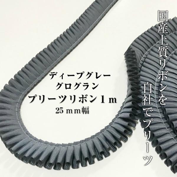 ロゼット リボン ディープグレーグログラン プリーツ グログラン リボン 25mm幅 プリーツリボン 1m 国産両面 リボン は ロゼット ロゼッタ 作り ヘアゴム カ