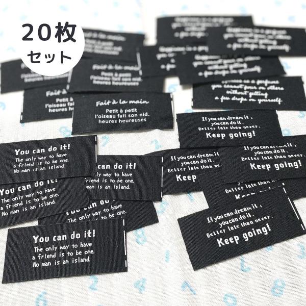ハンドメイドに 布タグ お試しセット - 綿平織ロゴタグ(黒)20枚セット