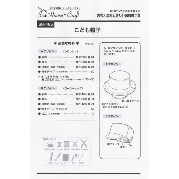 【子供服型紙】こども帽子 幼男女児(帽子サイズ:頭まわり52cmと54cmの2サイズ)<br>【パターン 型紙】サンパターン