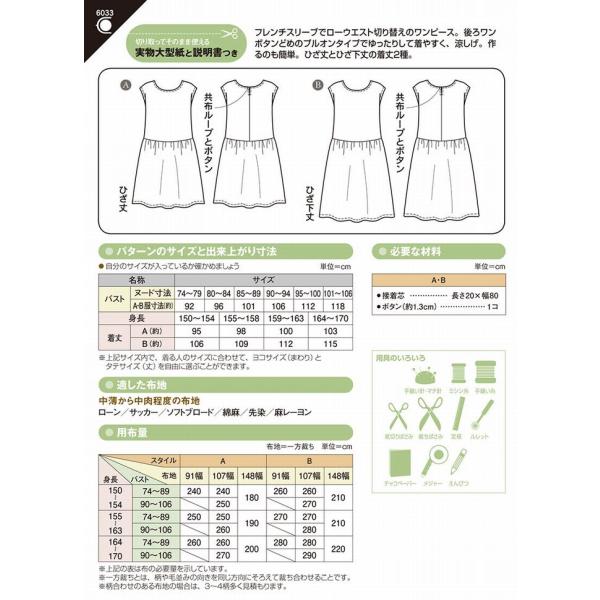 型紙 パターン ローウエストワンピース No.6033 フィットパターン サンプランニング 大人 子供 ベビー 赤ちゃん 作り方 洋裁