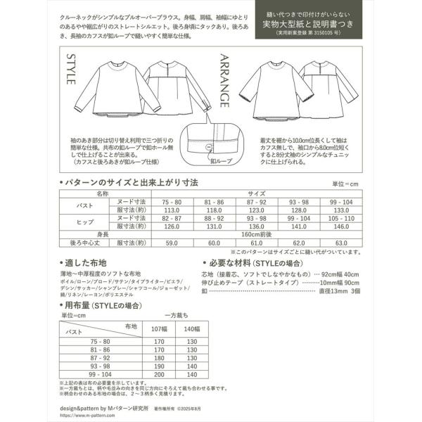 型紙 パターン クルーネックプルオーバー M231 Mパターン研究所 サンプランニング
