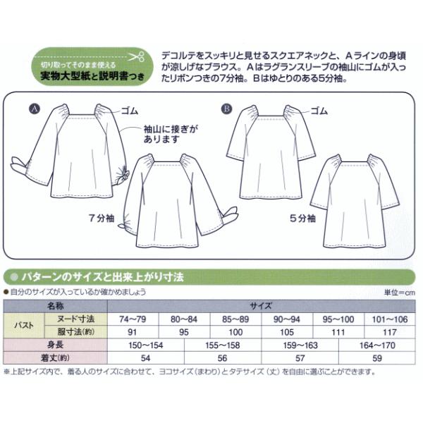 大人服型紙スモックブラウスパターン 型紙サンパターン