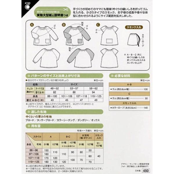 型紙 パターン 園児スモック 4740 フィットパターンサン サンプランニング