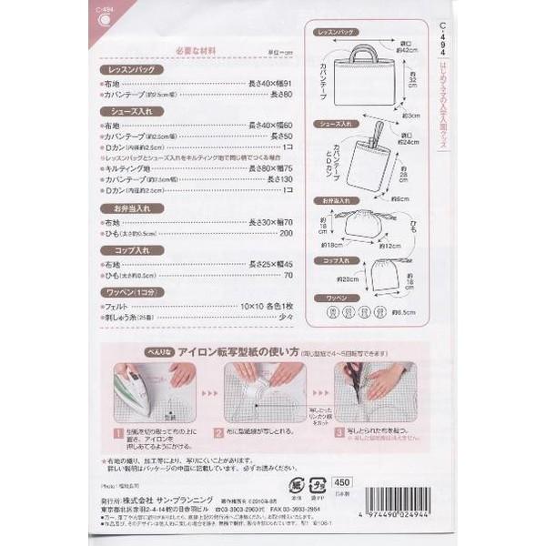 型紙 パターン はじめてママの入園入学グッズ C494 クラフト楽園 サンプランニング 大人 子供 ベビー 赤ちゃん 作り方 洋裁