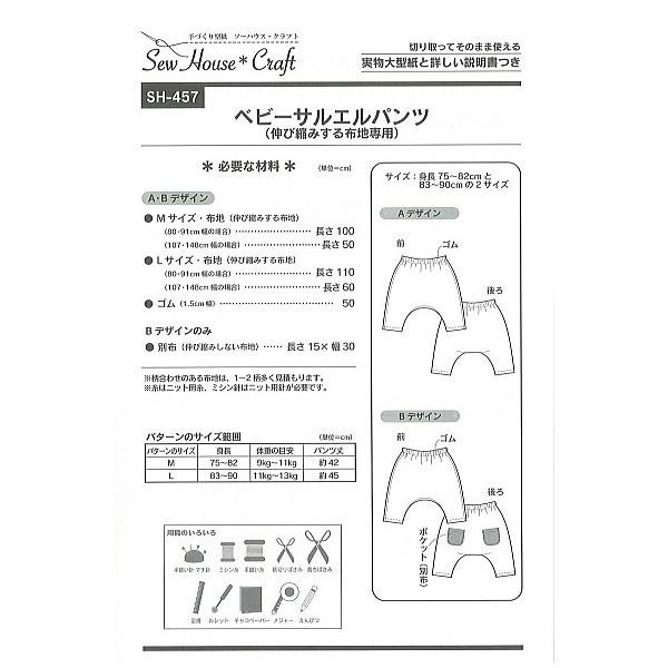 型紙 パターン ベビーサルエルパンツ ベビー(身長75〜82cmと83〜90cmの2サイズ) SH-457 SH457 ソーハウス・クラフト