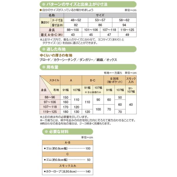 子供服型紙 入園入学・園児スモック(身長88-125cm)