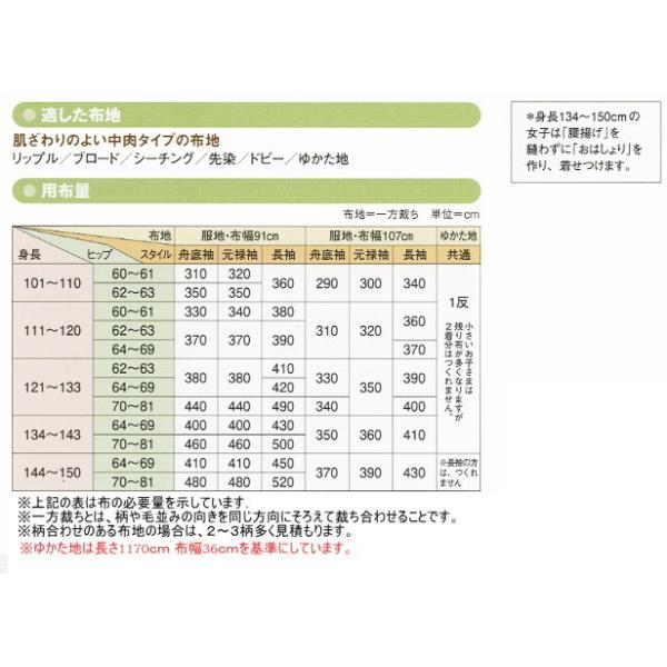 子供服型紙 キッズゆかた(身長101〜150cm)