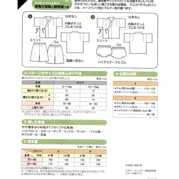 パターン ( 型紙 ) ベビーじんべい ( 甚平 ) ( 簡単 実物大 作り方 子供服 ベビー服 キッズ 洋服 )
