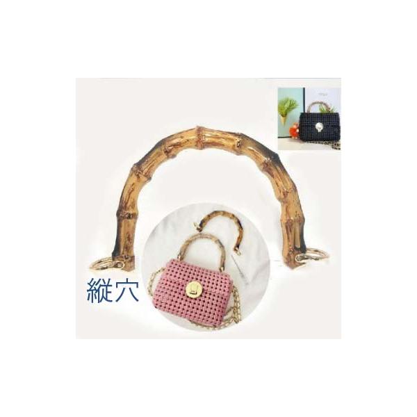 竹製持ち手 Mサイズ DIYバンブーハンドル バンブー持ち手手芸 U形 バッグ用 竹製 天然素材 左右の穴/縦穴 バックル付け 手さげタイプ