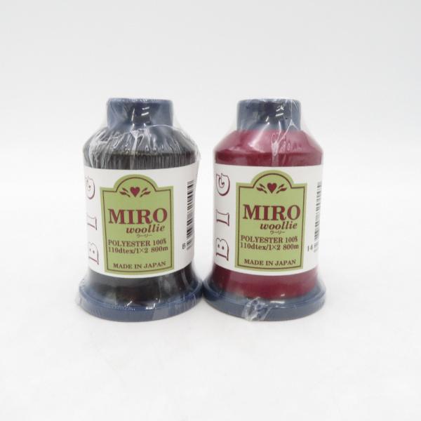 MIRO woollie BIG ロックミシン糸 2個セット 黒/14 110dtex 800m ブラック レッド 日本製 未開封品 未使用品