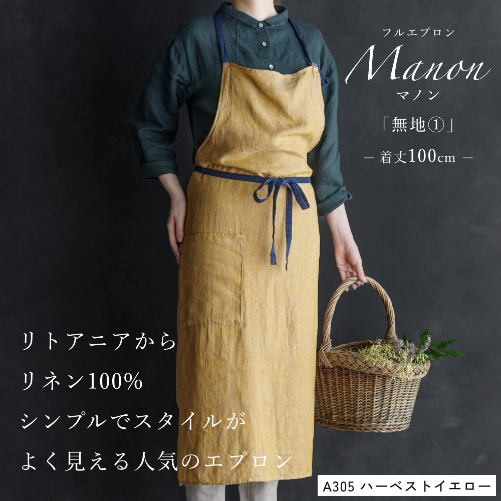 【全55色 無地1】Lino e Lina リーノエリーナ フルエプロン マノン Manon リネン 100% 天然素材 レディース メンズ おしゃれ 北欧 リトアニア 着丈100cm 爆買