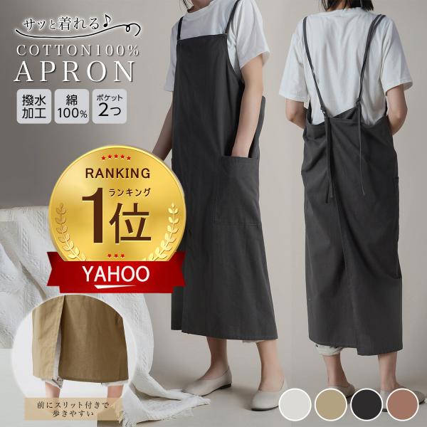 即納 エプロン おしゃれ かわいい フリーサイズ ワンピース 体型カバー撥水加工 家事エプロン お尻が隠れる ポケット カジュアル カフェ 保育士エプロン