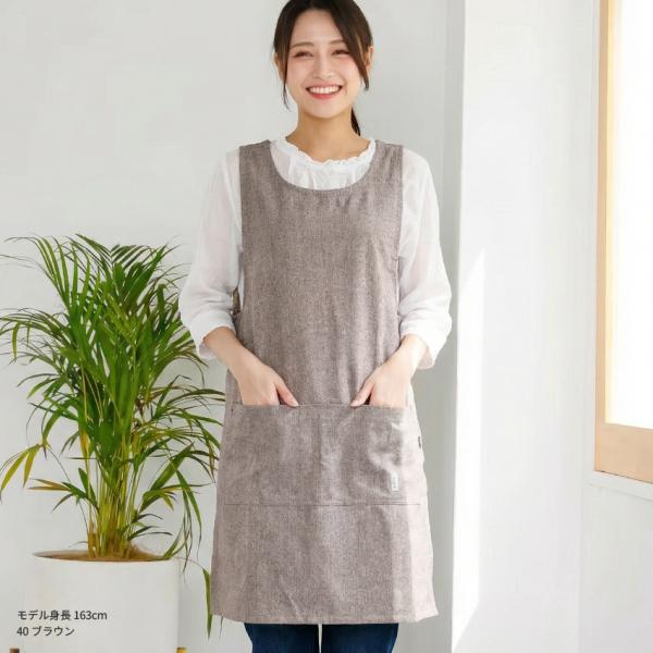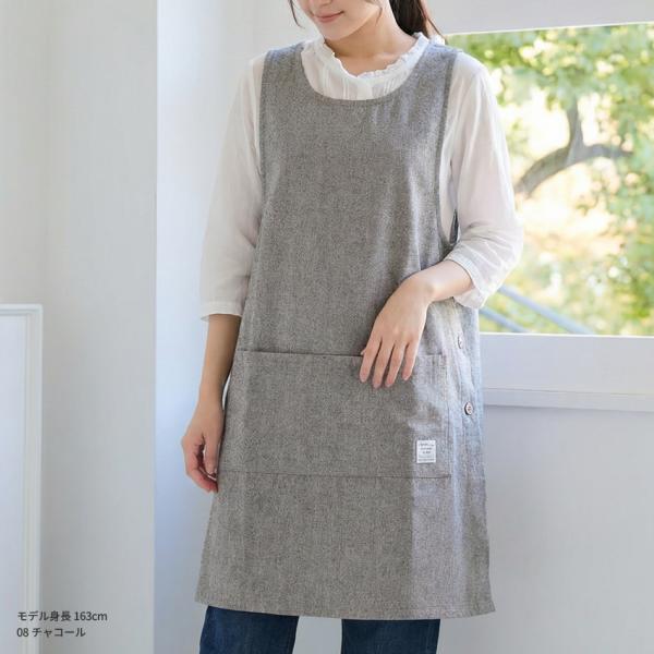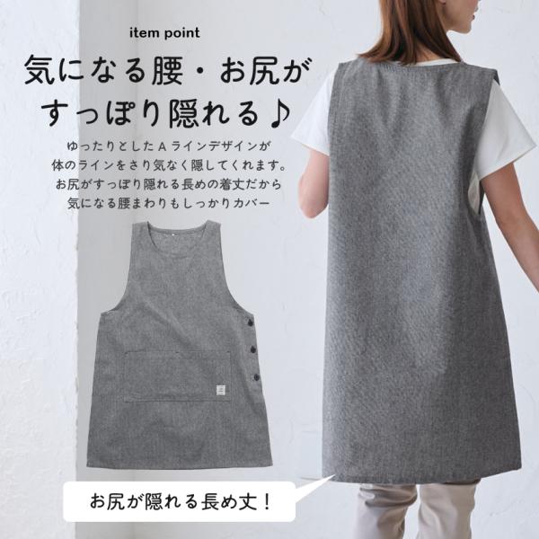 M〜3Lサイズ シャンブレー生地 ワンピース エプロン 無地 シャンブレー ゆったり 綿 コットン シンプル ロング ワンピースエプロン 保育士 ロング ギフト おしゃ
