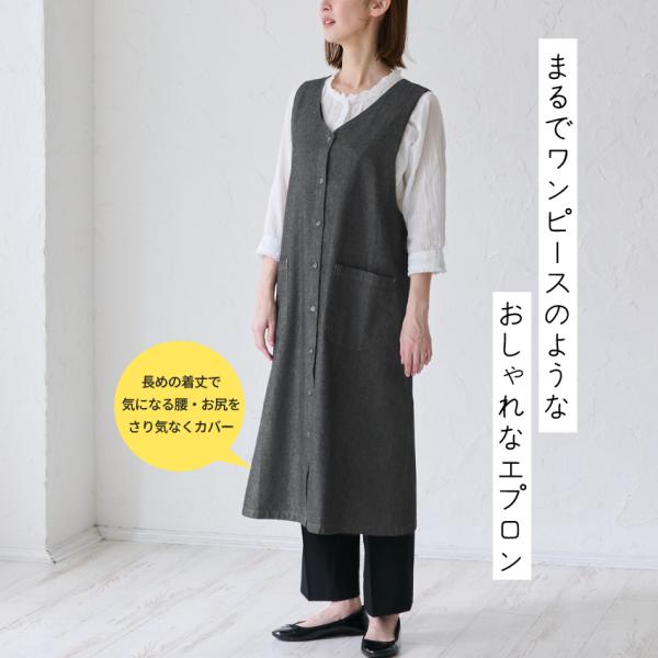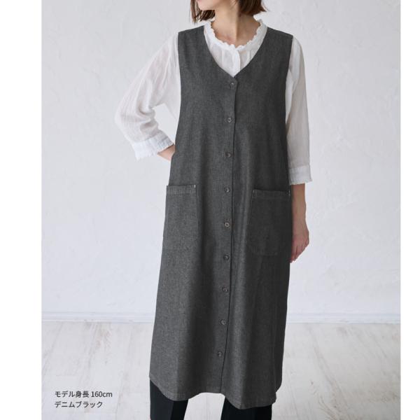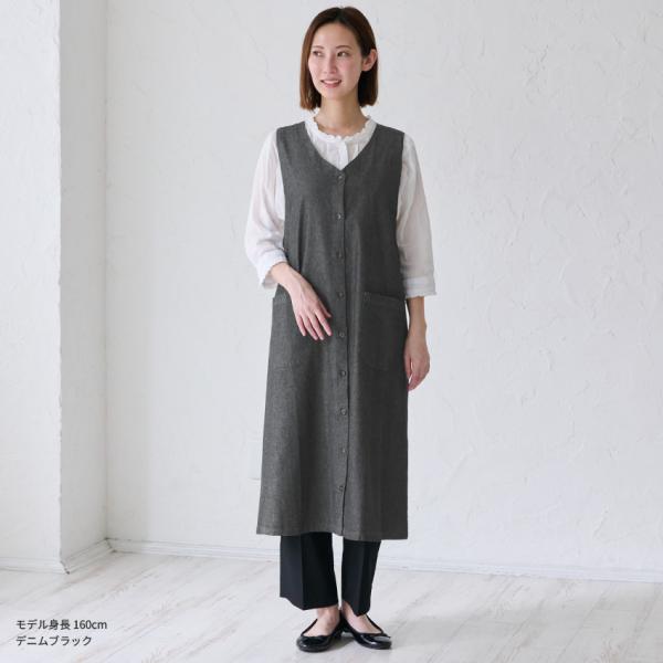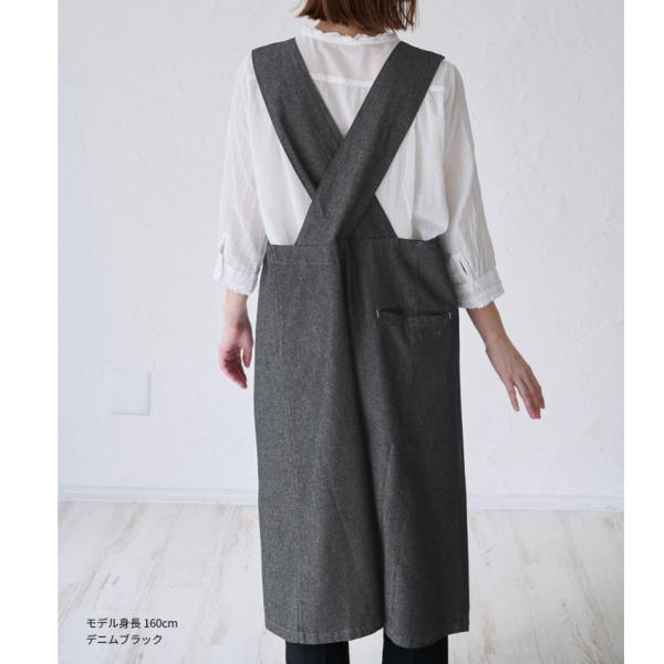 バッククロス デニム ワンピース ゆったり エプロン かぶり ロング 無地 かわいい お尻が隠れる 可愛い 料理 ギフト プレゼント 保育士 ゆったり 大きいサイズ