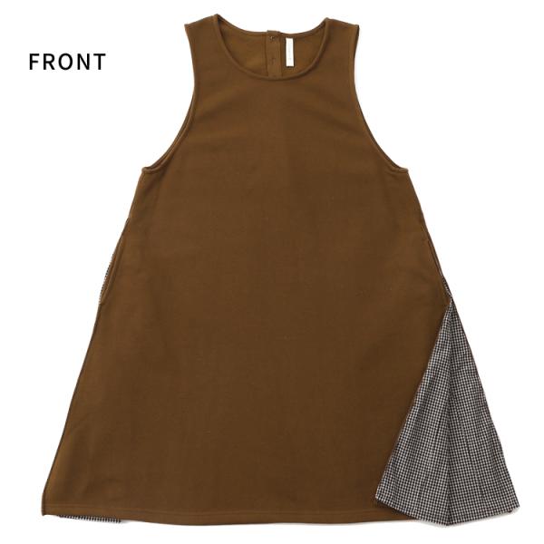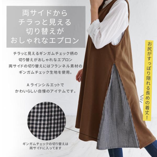 裏フリースギンガムチェック切り替えワンピースエプロン ふわふわ 裏起毛 裏フリース 保育士 ロング シンプル ギンガムチェック ワンピース かわいい 大きいサ