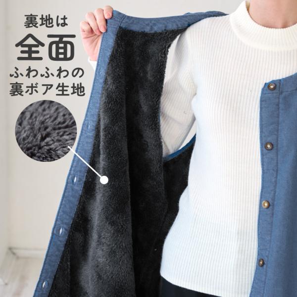 デニムエプロン エプロン 裏起毛 無地 裏ボア ボア ゆったり シンプル デニム ロング ワンピース 保育士 ロング ギフト おしゃれ かわいい 母の日 ギフト プレゼ