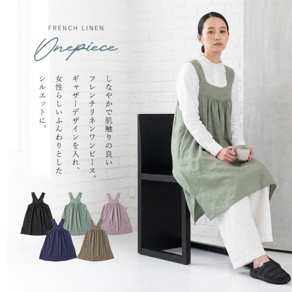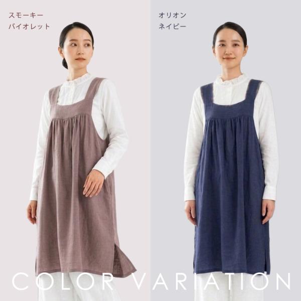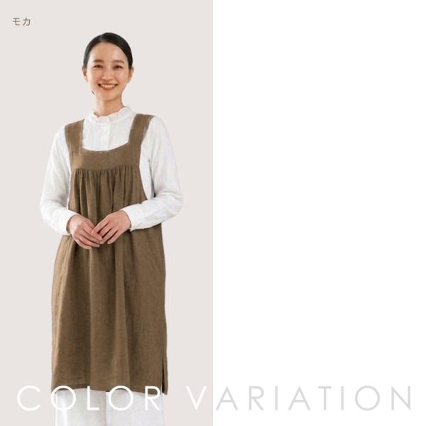エプロン ワンピース リネン 100% 日本製 おしゃれ かぶるだけ 麻 おしりが隠れる ゆったり 大きめ かわいい 大人