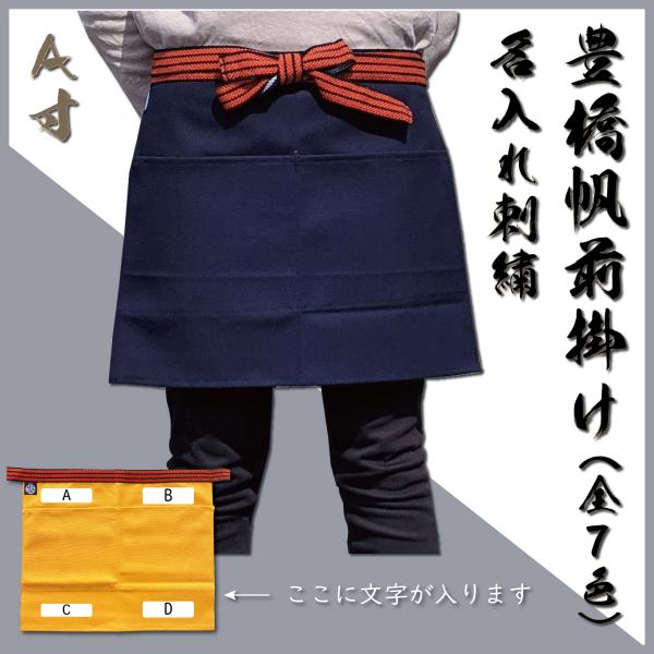 [デライトベース] 名入れ刺繍 帆前掛け A寸 丈38cm 6カラー 前掛け ショートエプロン 帆前掛け 無地 ポケット付き 丈夫な帆布生地 カフェエプロン