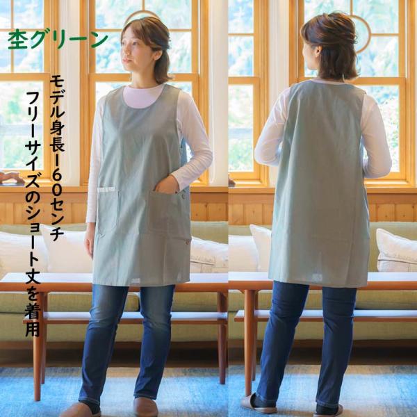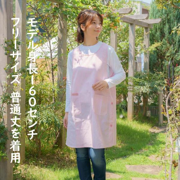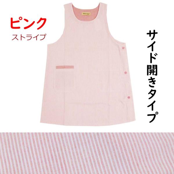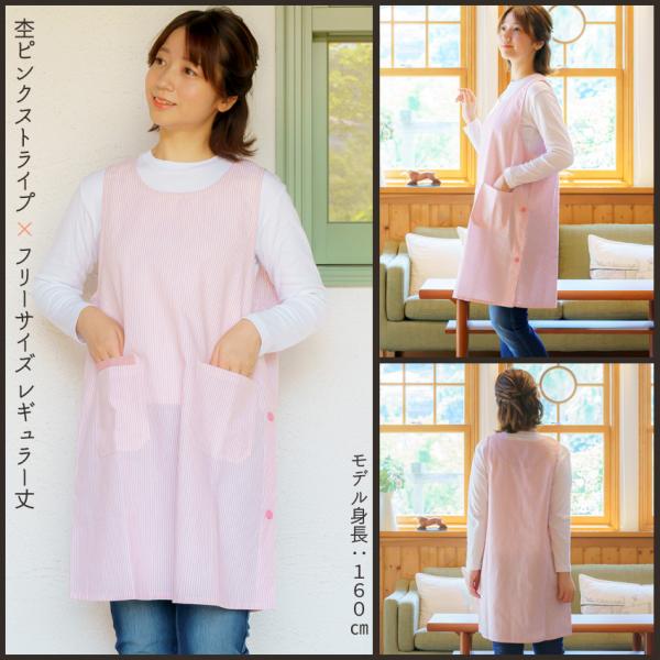 春色 エプロン サイドボタン 保育士 フリーサイズ LL 大きいサイズ 普通丈と小柄な方に嬉しいショート丈