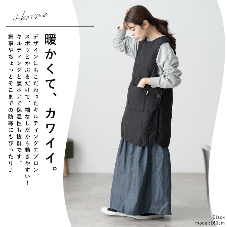 エプロン おしゃれ かぶるだけ チュニック 裏起毛 ボア 撥水 暖かい キルティング ノースリーブ 大きいサイズ