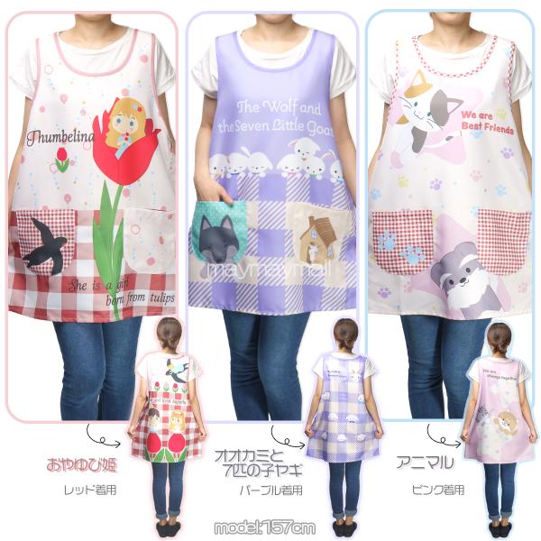 エプロン 保育士 絵本 童話 新作 幼稚園 先生 介護士 おやゆび姫 オオカミと7匹の子ヤギ シマエナガ アニマル サイドボタン ギフト M L